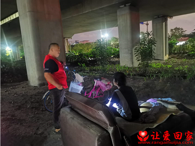 今天下午志愿者梁永年路过张槎立交发现浪人朱某睡在破烂的沙发上,志愿者上前聊天原来是老乡,并开始用家乡话进行沟通,然后联系让爱回家志愿者斌哥进行扩散联系上了家人。