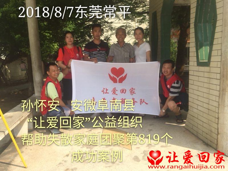 2018年8月7日,“让爱回家”志愿者成功帮助孙怀安与家人团聚,开始新生活!