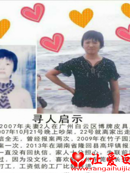 | 失踪地址 | 广东广州白云区竹子园五横路博牌皮具厂 |